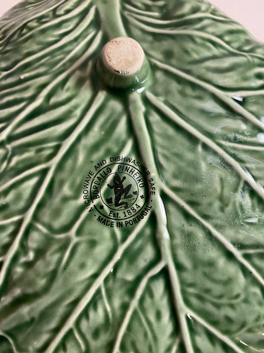Bordallo Pinheiro Cabbage Green 6-Part Relish Dish, Divided Serving Dish and Centerpiece, made in Portugal.