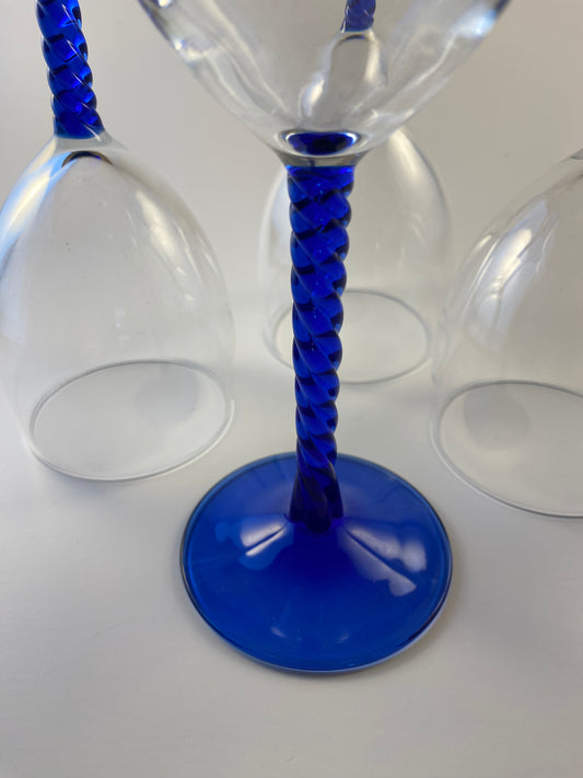 Blue Twisted Cobalt Blue Stemmed Wine glasses, set of 4