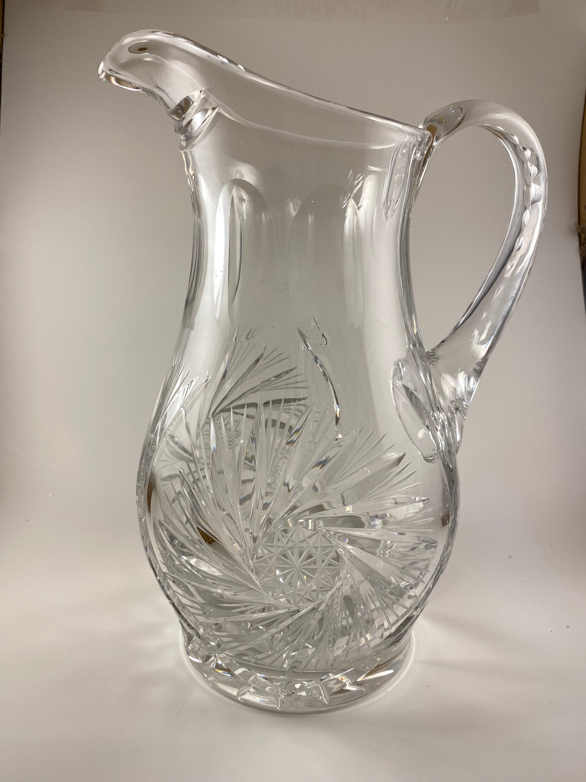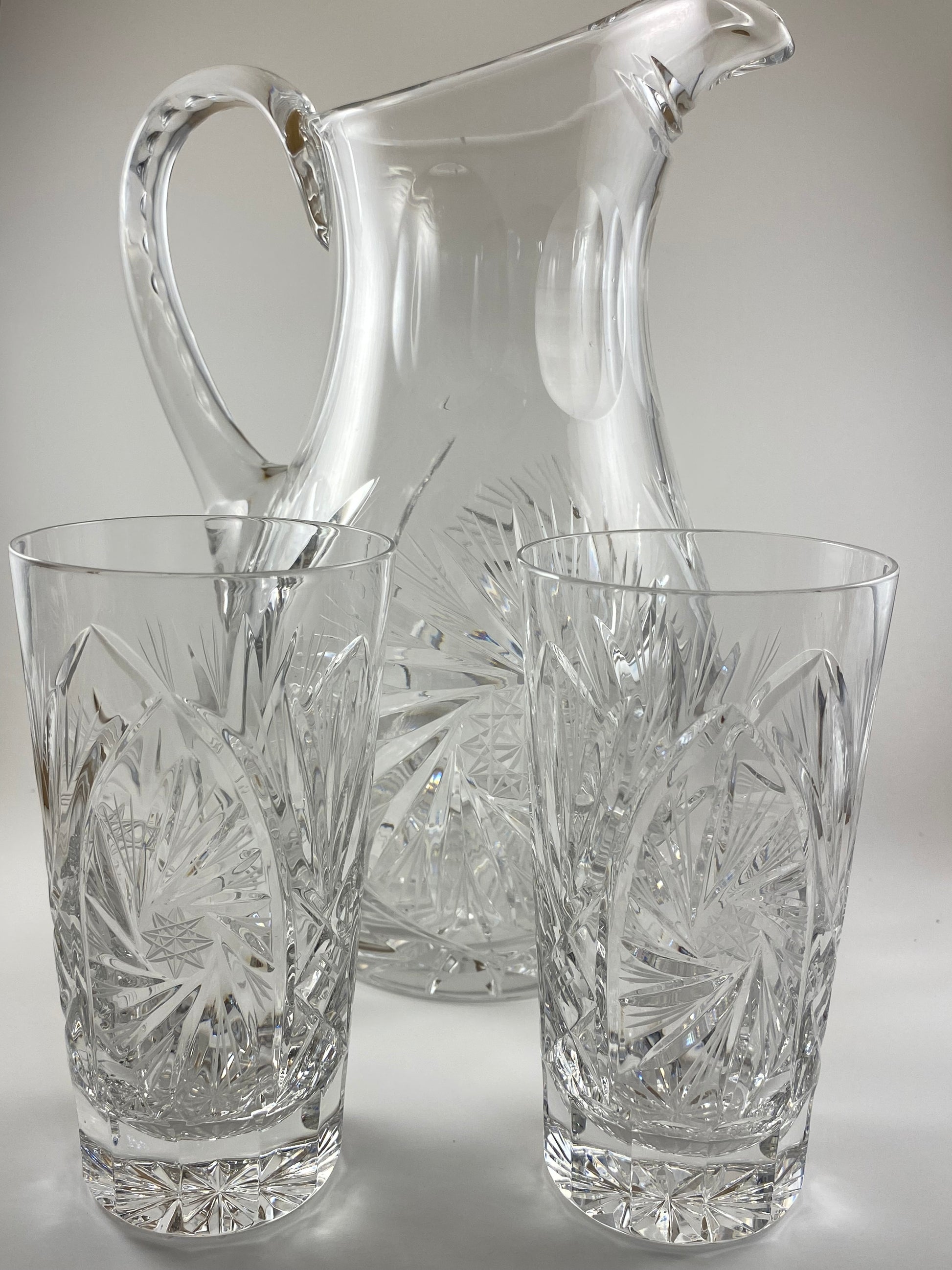 Eleanor by America Cut Leaded Crystal Pitcher and 8 matching hi ball glasses.