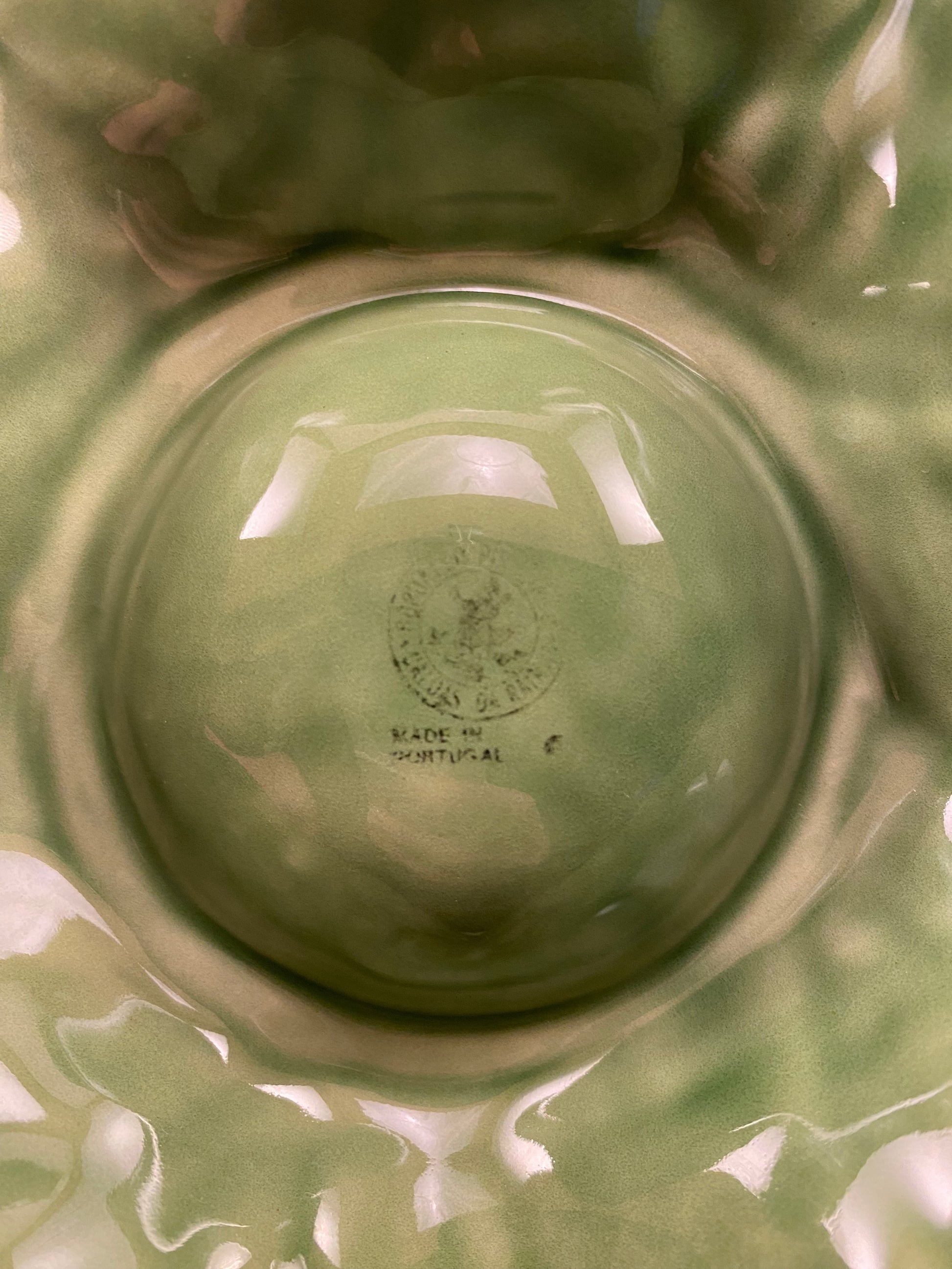 Bordallo Pinheiro Cabbage Green 6-Part Relish Dish, Divided Serving Dish and Centerpiece, made in Portugal.